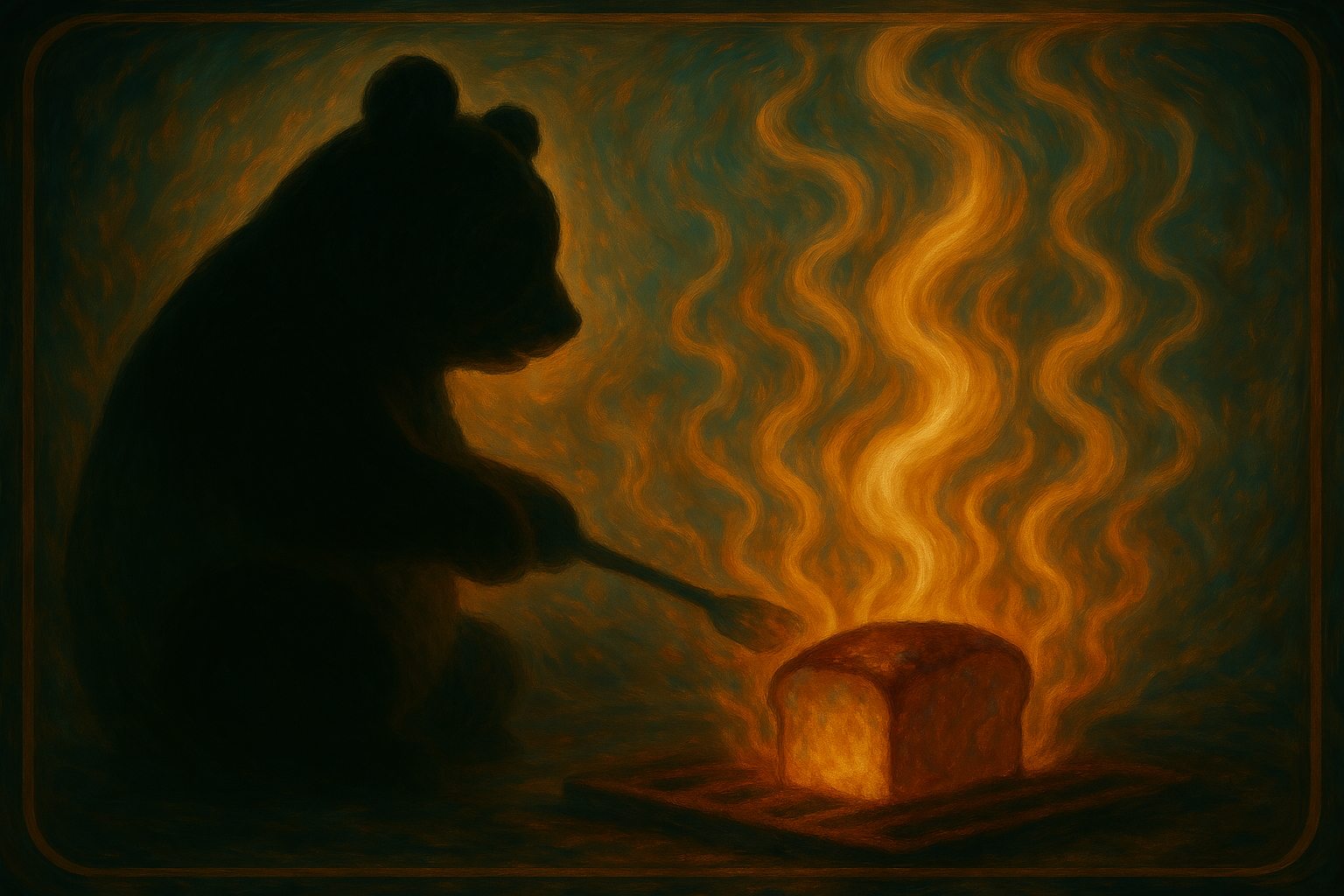 そのパンダがパンを焼くという設定は、文明と自然の融合を象徴する詩的な矛盾だ。