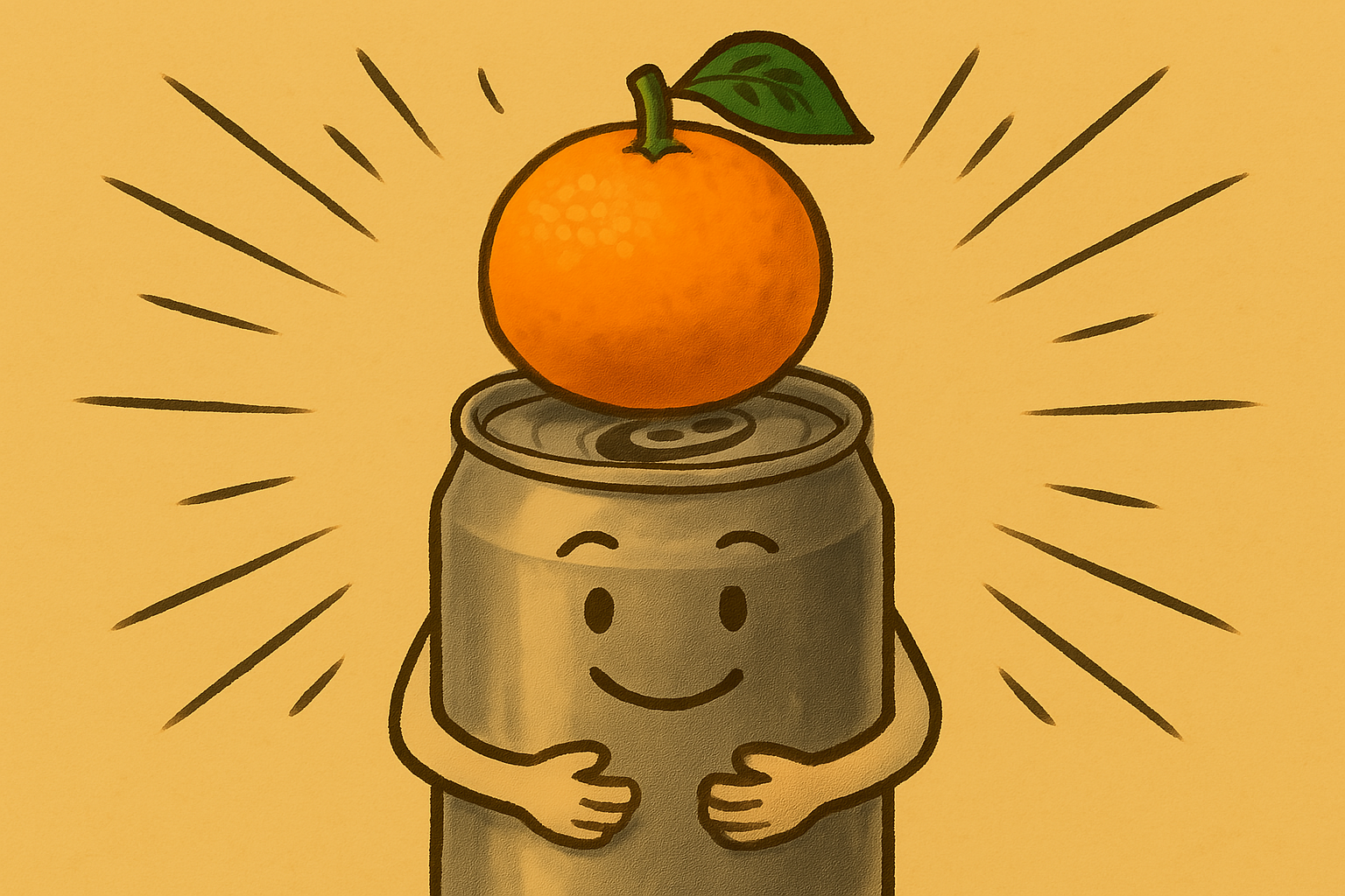 「アルミ缶の上にあるミカン」。