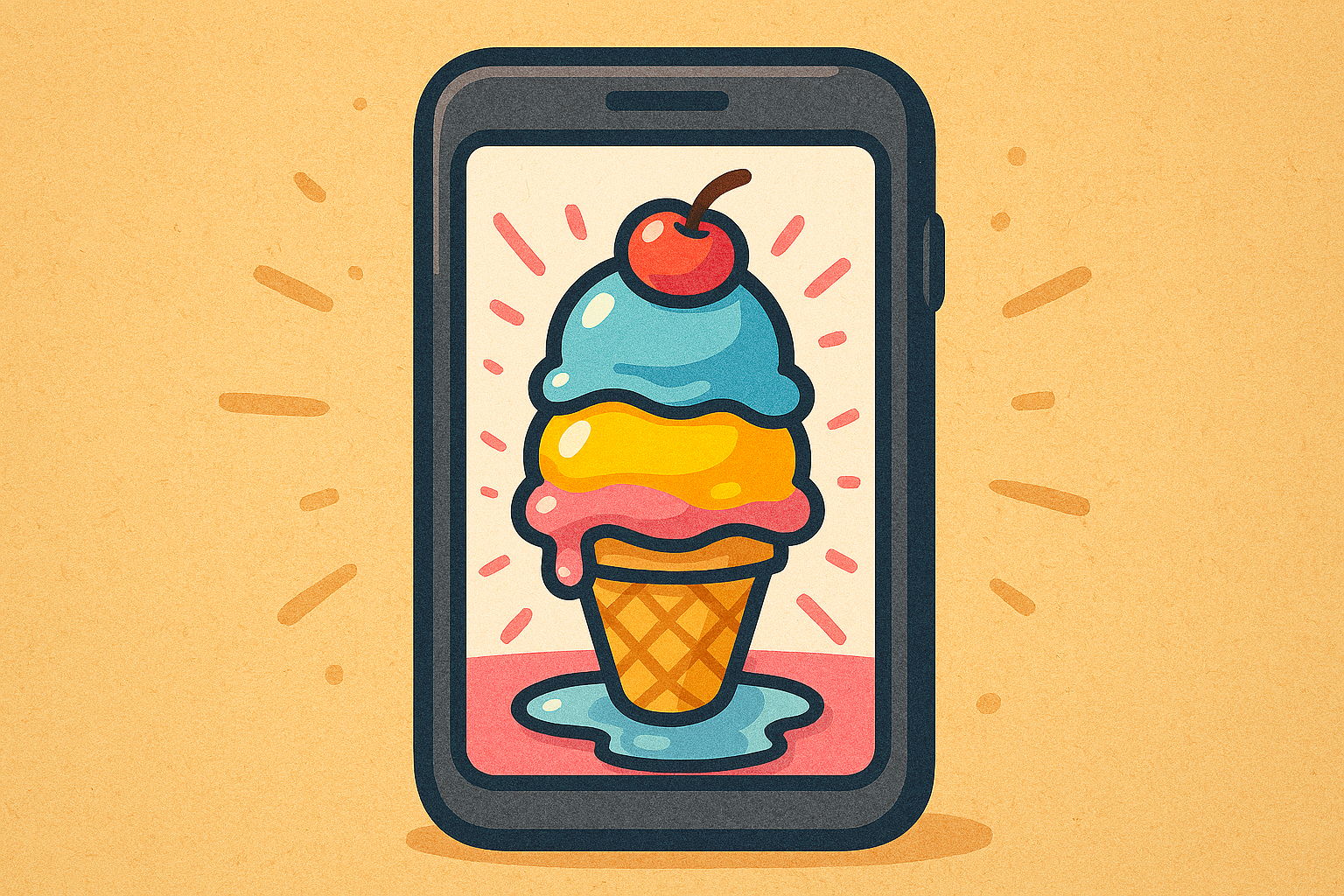 人はアイスを食べるだけでは満足しない。写真に収め、加工し、タグを付け、タイムラインに投稿する。