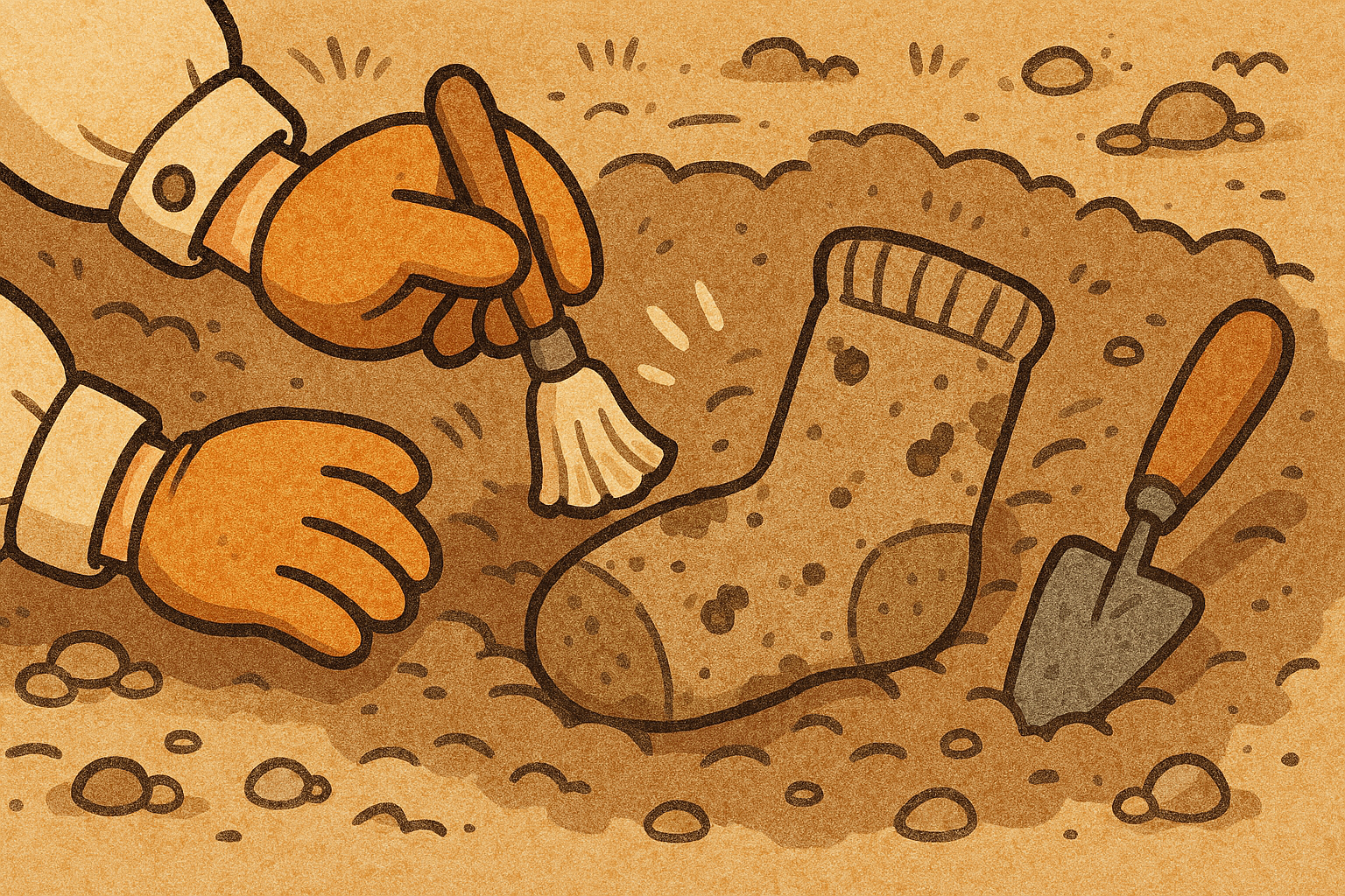 哲学的に言えば、靴下の発掘は「潜在的存在の顕在化」です。