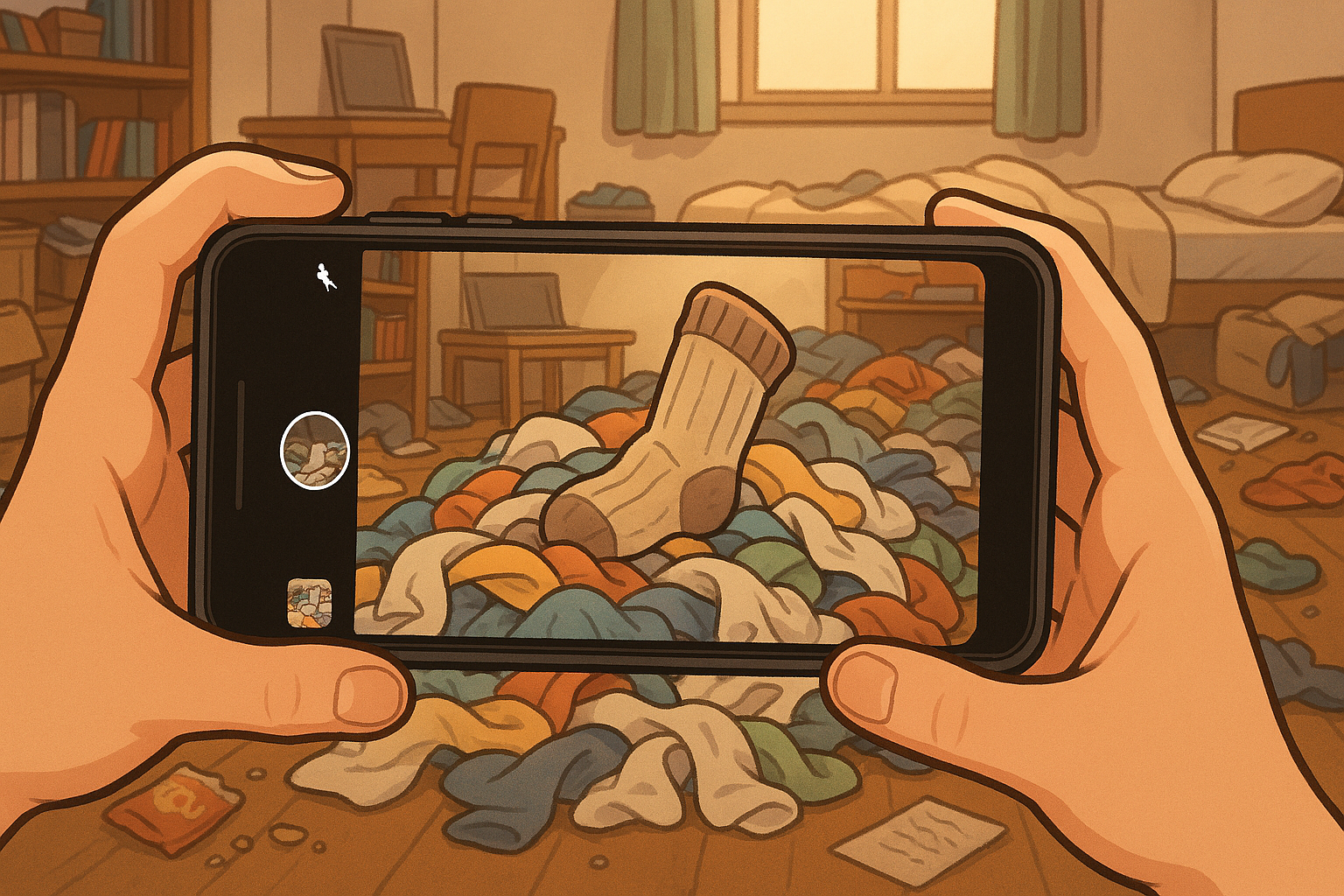 もしこの言葉が風刺的な作品の一節として登場するなら、靴下は「忘却された日常の遺物」として描かれるでしょう。