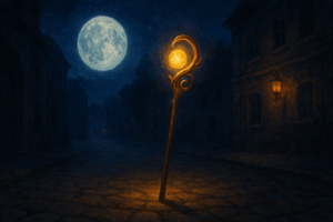 その杖が放つ光は、派手な閃光ではなく、誰かの足元をそっと照らす優しい明かり。