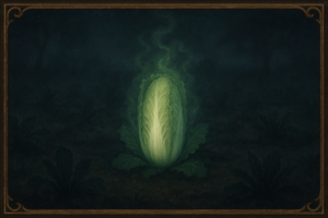 カードゲームのフレーバーテキストとして読むと、白菜という日常的な存在が、一気に“異界の危険物”へと変貌します。